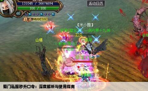 在如今网络游戏盛行的时代,玩家们对游戏体验有着更高的要求。其中,快速升级成为众多玩家的追求。特别是在蜀门这款游戏中,私服秒升口令因其快速升级的机制受到了许多玩家的关注。本文将围绕“蜀门私服秒升口令”展开详细介绍,为玩家们提供使用指南和注意事项。蜀门私服秒升口令是什么蜀门私服秒升口令是一种在游戏私...